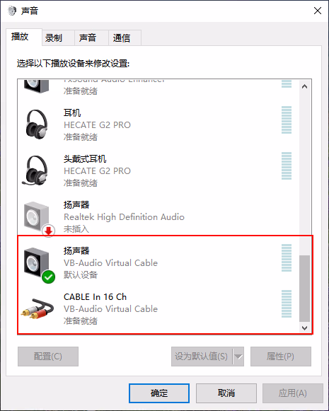 随后在“录制”标签页找到这个VAC麦克风,设置为默认设备